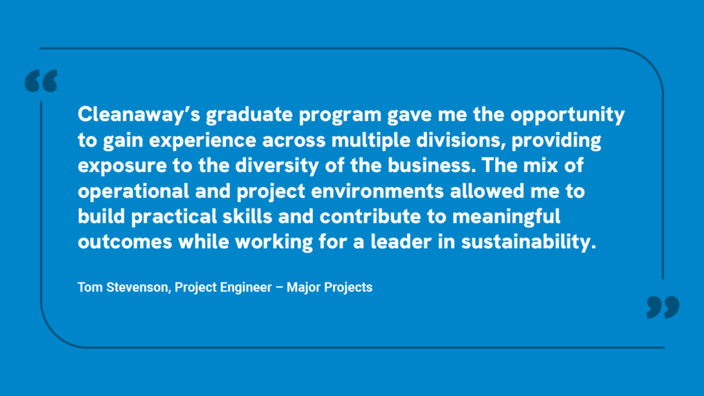 Kick‑start your career with a graduate program that puts you at the forefront of building a cleaner, more sustainable Australia. At Cleanaway, our 2027 Graduate Program offers driven, curious graduates the opportunity to help shape Australia’s circular economy and contribute to meaningful, real‑world environmental outcomes. Across a structured program of up to two years, you’ll gain hands‑on experience through rotations, access formal learning and development, build networks, and set yourself up for a long‑term career in resource recovery. We welcome graduates with varied journeys and strengths, and we look beyond your academic transcript when recruiting.