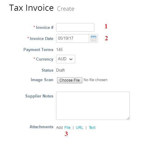 3. Attach your PDF invoice. Click on Choose File or add file. Attach PDF copy of tax invoice.
