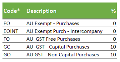 6. Select the correct tax description (AU GST- Non Capital Purchases will be the default type) DO NOT CHANGE tax figures.