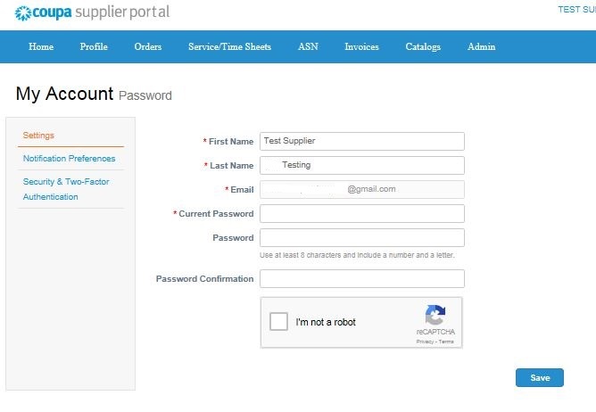 b. Profile: This section helps you manage your profile on the Coupa Supplier Portal i.e. address, and key contact details