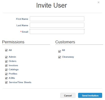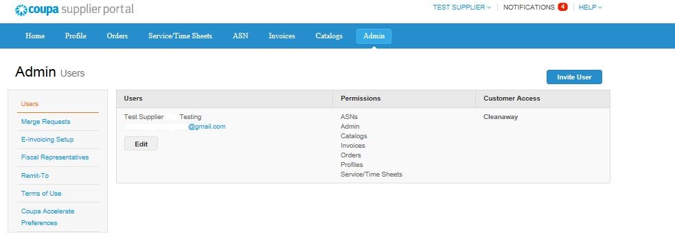 The below window will pop-up to help you control the permissions for the new user. NOTE: Email addresses created in Coupa are globally unique. They can only be used once for registration or new invitation. As per below, permissions can be configured by admin/initial user.