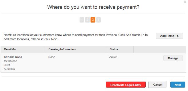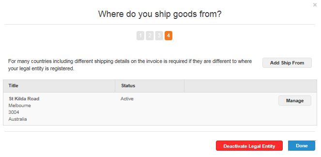 This information will be picked up from your invoice address – Click Next & Done all the way through to ‘Set Up Complete’ Example below