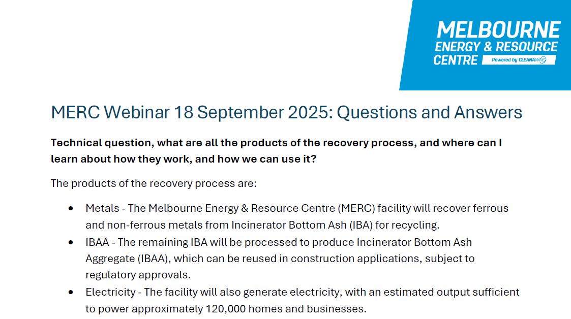 Cleanaway acknowledges the depth of community concern about the proposed Melbourne Energy & Resource Centre (MERC) and understands that residents have expressed strong views about health, environmental impacts, and the consultation process.